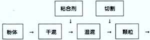 粉體物料與結(jié)合劑在圓筒形容器中由冶金部混合槳充分混合成濕潤軟材,然后由側(cè)置的高速粉碎槳切割成均勻的濕顆粒。